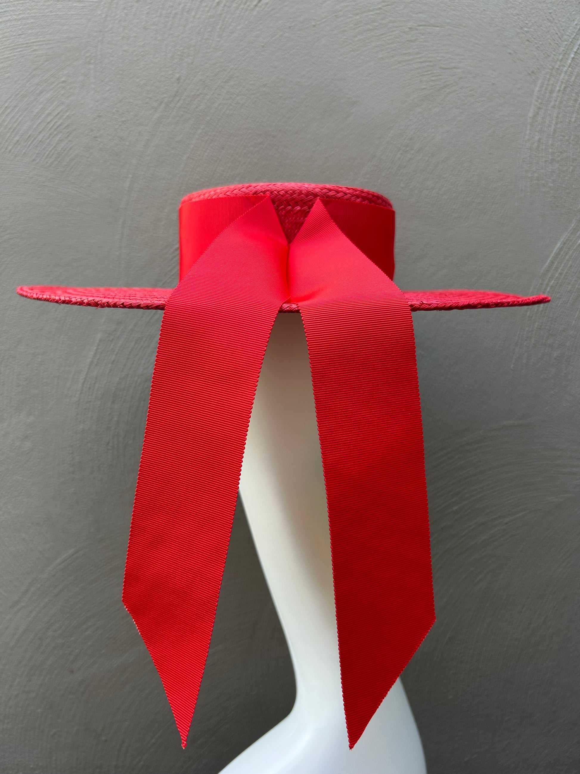 Make a statement this season with this stunning wide-brim red boater hat. Crafted from premium straw, the red exudes timeless elegance. The wide red band adds a touch of luxury and sophistication. This hat secures with a hat elastic for a comfortable fit.